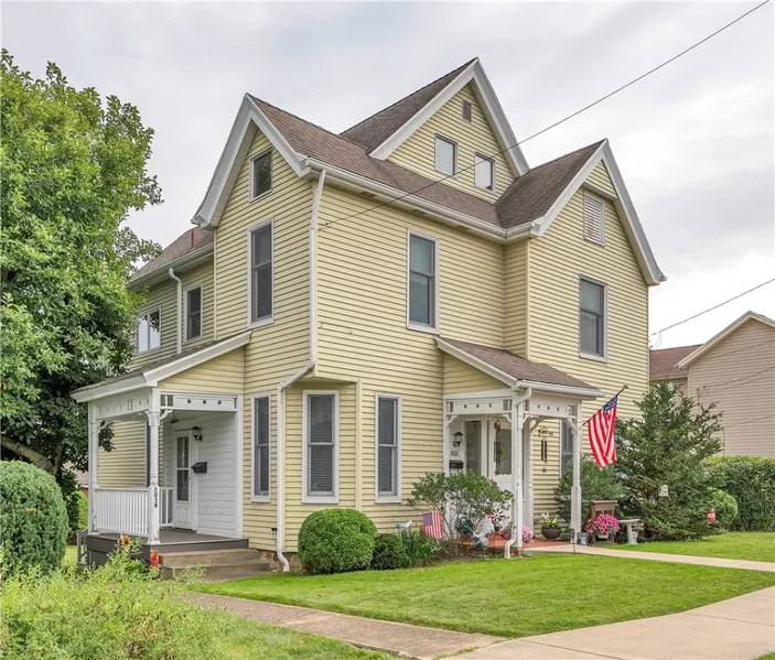 Welcome to a beautiful well-maintained Victorian style duplex! This home abounds in character with its three inviting porches, beautiful hardwood floors, fireplaces, peaked roof, nice windows, and the beautifully landscaped yard. The first floor has two bedrooms with spacious walk-in closets, dining room, living room, large eat-in kitchen, large full bath, two fireplaces, two porches, and a laundry area and storage. The second floor has two bedrooms with spacious walk-in closets, living room, large eat-in kitchen, large full bath, two porches and a designated laundry room with storage. Updates include a newer roof and an air conditioning unit. The home is near shopping, restaurants, and major highways including Route 70, Route 119 and the PA Turnpike.