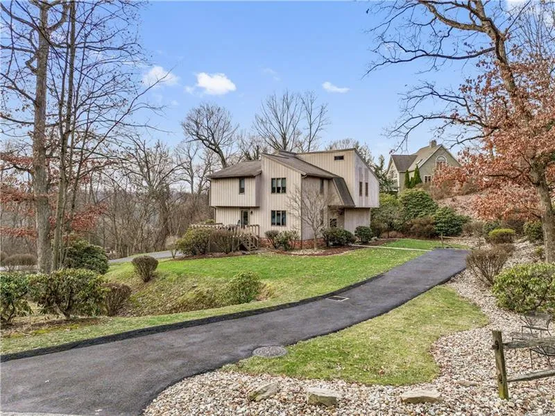 You'll fall in love with this soft contemporary home with Mid-Century modern flair and the tranquility of a private wooded lot nestled on a harmonious 1 acre with views of mother nature from every window. This home oozes curb appeal and offers an abundance of living space. Offered for the 1st time, this custom home features a large driveway and a tranquil stream winding seamlessly thru the picturesque lot. Step into the heart of the home and unwind in the inviting family room with cozy fireplace. Complete with panoramic view of the deck and private yard. Kitchen has Granite tops and additional large deck to enjoy your sundrenched mornings. 1st floor laundry offers convenience. Upstairs the owners suite has a generous walk in and En-suite and private deck. Each spacious bedroom has abundant closet space. Finished lower level has an oversized 30x30 garage, game room and 1/2 bath. Reside in...