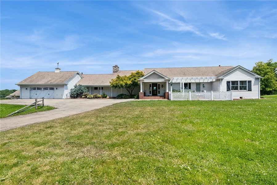 Welcome to your private retreat! Nestled on 5.068 beautifully maintained acres, this expansive 4 bedroom 4 bath ranch offers the prefect blend of country charm and modern comfort. This property is ideal for those seeking space, serenity, and the true ranch lifestyle. The luxurious master suite includes a sitting room, double sinks and a sunken jetted tub. The kitchen is a chefs dream with a large island ideal for casual gatherings. It has abundant cabinetry and quality appliances. The lower level has cork floors, sauna, large laundry room, full bedroom and full bath. There are stunning views of the surrounding landscape throughout the home. Enjoy outdoor living on the flagstone patio that has an electric awning, gazebo and pond. A 3 car garage and barn provide ample storage and flexibility. This beautifully designed home offers both luxury and function, perfect for relaxing, entert...
