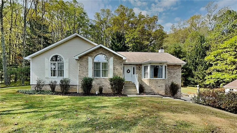 Discover this rustic ranch home, privately set back from the road down a scenic, tree-lined drive. Public water and sewer. The open floor plan. Cathedral living room w exposed beams and a stone fireplace. Kitchen is equipped w a smooth-surface cooktop and a peninsula w bar seating, and the dining area provides direct access to a large rear deck via a newly updated patio/screen door. Primary bedroom w cathedral ceiling, walk-in closet, and en-suite bath, plus 2 additional bedrooms and a full hall bath. Lower level provides significant potential for future expansion. Main level laundry w access to deck. Hand-scraped style flooring flows throughout the entire living space while the baths and laundry feature ceramic tile. Enjoy the outdoors on the expansive deck overlooking a serene, treed backyard. Two-car integral garage plus large storage shed. Updates include roof, HVAC, hot water heater...