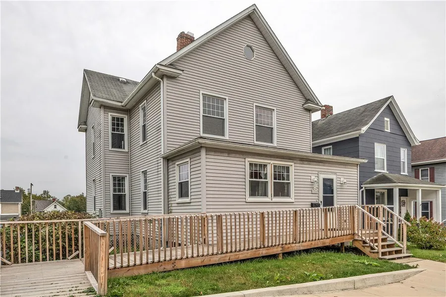 Welcome to a super-sweet four-bedroom and two full bath home in the heart of Youngwood! This home has a charming, spacious living room with hardwood floors, a large eat-in kitchen with lots of storage space, a main-floor full bathroom, and a dining room that can be converted into a first-floor bedroom or laundry room! The laundry hook-ups are already installed! The beautiful wood staircase leads to the upper floors, which include another full bath and the four spacious bedrooms. The attic space is easily accessible and great for storage! The front of the home has a wheelchair ramp providing a no-step entrance. The home has a spacious deck perfect for outdoor entertaining and a fully fenced-in backyard for privacy and pets!
