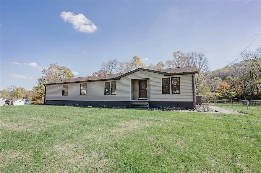 This well-kept 3 bed, 2.5 bath ranch sits on 3.66 acres with a peaceful stream in the backyard. Offering over 1,800 sq ft, it features an open kitchen with a huge island, tons of counter space, and more storage than you can shake a stick at. The partially finished basement adds room to grow, and the enormous back patio and partially fenced yard are perfect for kids, pets, and entertaining. Enjoy central A/C, country charm, and space to breathe inside and out. A great place to call home