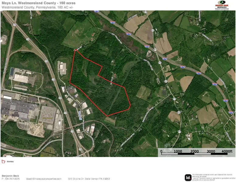 Located outside of Mt. Pleasant, PA, this property is the ideal investment opportunity. Comprised of 160+/- acres with access from Mays Lane and Fisher Road, this parcel is ideally situated between Route 119 and the Pennsylvania Turnpike with utilities available in the southwest corner, mineral rights, and a large industrial park on its west and southwest border. Boasting excellent access, the ideal mix of field and timber, and excellent access, this property is ideal for development, investment, or recreation.