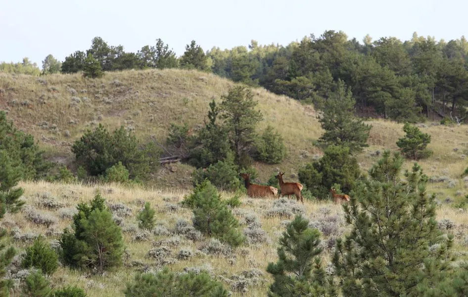 Consisting of 9,844 deeded, 4,123 BLM and 640 State of Wyoming lease acres, this 14,608 acre ranch is made up of cedar and pine tree-covered hills and rugged draws that provide excellent habitat for trophy elk and mule deer. Located in elk hunting Area 123, which currently has a trophy bull elk season every other year and a cow season every year, the ranch has historically and consistently harvested 380 class bulls and an abundance of cows. In addition, the ranch is located in non-resident deer hunt Area Region B and resident deer hunting Areas 8 and 21, and also offers some of the best trophy mule deer hunting in the region. Great cover and water combined with unparalleled privacy make this one of the premier trophy elk and deer hunting ranches in Wyoming.