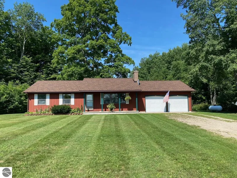 Meticulously maintained ranch style home on just under 6 acres with a countryside view best describes this offering. 3 bedrooms and 2 bathrooms on the main floor with 1 fully finished non-conforming bedroom in the basement. Property is level in terrain and resembles a park like setting in looks and care given to the grounds. Home offers central air, fireplace, main floor laundry with newer washer and dryer and brand new roof with a transferrable lifetime warranty. Full mostly unfinished basement has potential for the addition of finished living space. Enjoy hours of countryside viewing from either your covered front porch or private rear deck. Attached 2 car garage, detached 24 x 28 second garage with power and a spacious storage shed. Property has frontage on M-55 and S. 27 1/2 Road. Room to Roam!!