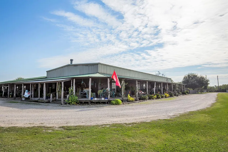 The lodge is located on ten private acres with oak, pecan, crepe myrtle, & fruit trees, near Hwy 71 between Eagle Lake and El Campo, and just an hour from Houston. The 8400sqft lodge and four apartments have recently been completely renovated. Enjoy your rocker or porch swing on the 12 ft. deep wrap-around covered country porch. Enter the lodge to be greeted by a entry hall that opens to a 20X15 rustic office in front of you, a 74X50 Great Room to your left featuring 16ft high vaulted ceilings, solid pine walls, a large stone fireplace, and his & hers half baths. To the right of the hallway you will find a 15X25 kitchen with marble floors, two five ft. stainless tables, commercial stainless sinks, and a large stainless refrigerator. The L-shaped dining area has a weathered corrugated metal ceiling, beautiful hand scraped wood floors, electric fireplace, bar serving area, and plenty of room to entertain a large party. The private residence can be reached from the Great Room or from an outside door. It has two bedrooms, an open living/dining area, and a full bath. In addition there are four fully furnished one bedroom kitchenette apartments with full bath. Additional amenities include a laundry building with two washers & two dryers, a gun range, a kennel, a play ground, and plenty of room to roam. Excellent duck, geese, and deer hunting in the area. Wheelchair accessible.