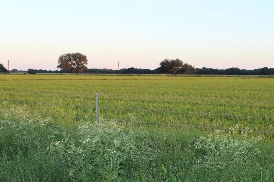 413.73 acres located approx. 9 miles northwest of El Campo, TX. Property is accessed from FM 1160. All farmland has been precision leveled and fencing is 2-3 years old. There is a small camp house on the property and 2 domestic water wells. Other improvements include 8" irrigation well (1,400 - 1,600 gpm), underground irrigation pipe with risers, 2,400 sq.ft. barn with concrete slab and attached 1,800 sq.ft. lean-to, and cattle working pens. This farm is in a 2 year rice rotation and is being used to produce seed rice. All farmland and hay field are completely irrigated. Wildlife consists of deer, hogs and waterfowl. Crop base: Rice-long grain - 341.33 acres, Corn - 11.07 acres.