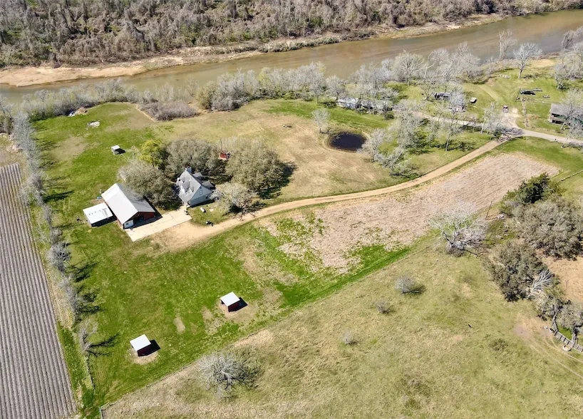 Are you looking for a riverfront paradise? This 3 bedroom 2 bath home sits on beautiful 5.9 acre lot bordering the Colorado River, nestled in a mot trees. Located at the end of the road with farmland on 2 sides and the river on a 3rd your only neighbor will be nature! This gorgeous property also has a large barn & several outbuildings for storage, a chicken coop, a pond, and enough space to add whatever your heart desires! Inside you will find stainless steel appliances, a very open floor plan and large bedrooms made for comfort. So, whether you just want to lounge around inside, sit on the front porch and enjoy the fresh country air or go catch a big yellow cat, this property has everything you need! You're also just minutes from local shopping and dining. Come get your little piece of Texas today!