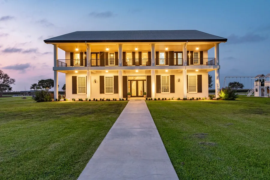 Located on the Pearl of the Prairie in Wharton County, this sprawling estate on 25 acres has a 5000-square-foot house featuring five spacious bedrooms and 4.5 bathrooms. The property includes a detached garage apartment of 1000 square feet that could easily be a home office. A slice of paradise awaits you with a crystal-clear swimming pool surrounded by a large porch topped with travertine tile. On the opposite side of the property, you will find a barn with a two-bedroom barndominium and a bunkhouse. Fitness enthusiasts will enjoy a state-of-the-art gym located within the barn as well. Of course, there is room to get some work done here as well, with covered parking and lots of storage. The property also includes a charming three-bedroom, two- bathroom farmhouse that exudes warmth and comfort. Two other barns offer more shelter for your livestock and storage for your equipment. Finally, the tranquil pond, brimming with life and wonder, adds to the property's beauty.