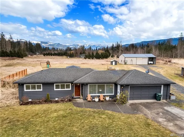 GORGEOUS MT BAKER VIEW backdrops this delightful country home sitting on 6 acres! Many upgrades along w/added family and utility room. Upgrades also include: SS appliances, laminate flooring, fresh ext/int paint, new shower/tub, custom fencing. Wonderful backyard entertaining patio area w/jacuzzi tub, gazebo and Koi pond. HUGE 30'x40' shop w/power could be rented out. Great income potential! Chicken coop on property! Equestrian/pasture suitable. A must see!