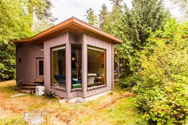 Chic-modern home on secluded 1-acre lot, featuring an abundance of natural beauty, only half a mile from the beach. Built for the hypersensitive, earthquake-proof, on a 2-story foundation enabling upward expansion of a second floor. Bedroom features convection heating, bathroom has radiant heated floors, separate indoor shower contains a bidet. All utilities run underground for tranquil aesthetics. Privacy for an outdoor shower & bathtub, trails in the woods, and two separate out-buildings.