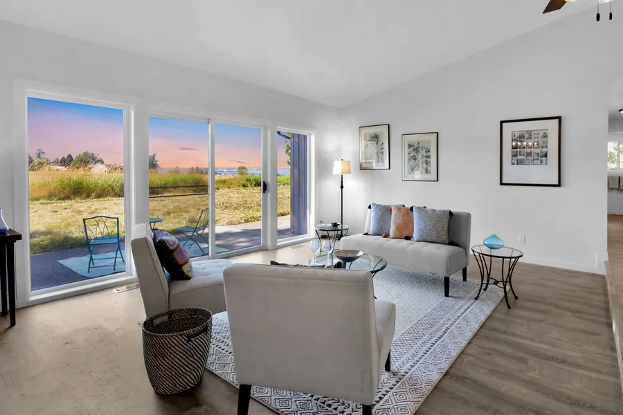 Welcome home to a beautifully renovated Blaine water view retreat. The tranquil location tucks this home away from the hustle and bustle, providing incredible views of Drayton Harbor, White Rock, and the Canadian Cascades. Featuring LVP floors, skylights, and large windows to usher in beautiful natural light, this 3-bedroom, 2.25-bathroom home boasts an idyllic country setting. Prepare meals in the chefs kitchen outfitted w/ SS appliances or host guests in the vast living room. Located minutes from the Peace Arch border crossing & renowned Semiahmoo Resort with its Arnold Palmer Golf course, spa, & marina. Experience relaxation amongst the natural beauty of the property while still maintaining a close distance to exciting recreation.
