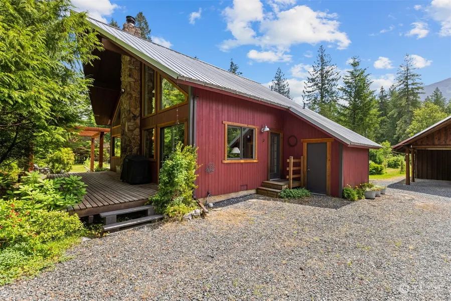 Rustic Mountain Home on 1.5 acres nestled in the Village of Maple Falls. Cozy up to the wood stove under vaulted T&G ceilings surrounded by fir lapped walls & Fir Floors. Kitchen has Farm sink, w/more storage in the adjoining laundry/mud area. Add'l Room on the second level for an office/bedroom. Enjoy Mountain views while tending the gardens and sitting by the custom rock fire pit. Outbuildings include: Wood Shed w/storage above for guests and treasures, workshop w/gardening tool & toy storage, Greenhouse, Chicken coop, Barn, and 2 lean-to structures. Property served with Hi Speed Internet and close to the Mt Baker Recreation Area & lots of outdoor activities! Great location for a VRBO! Sale includes 2 extra lots offering lots of potential