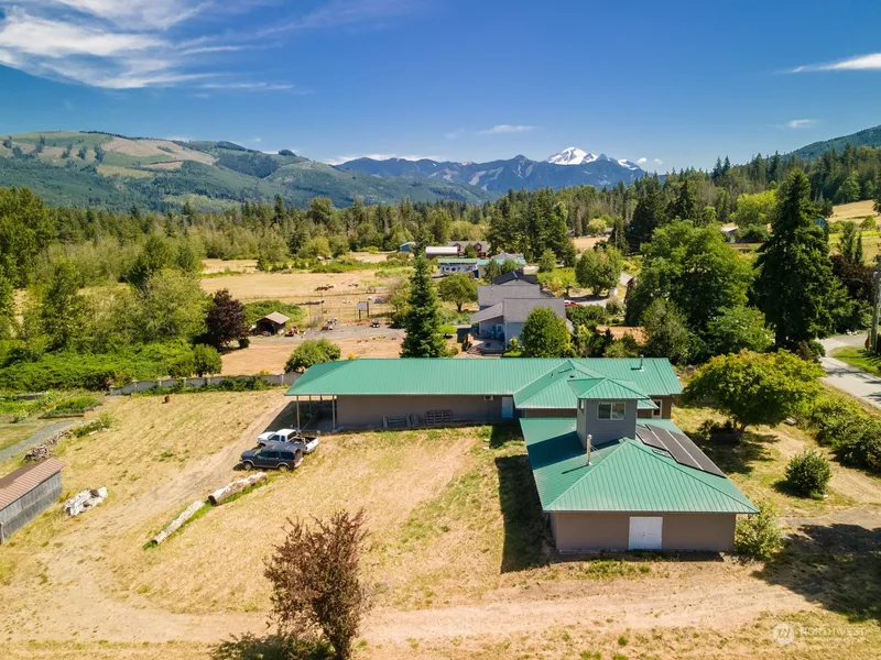 This property offers an incredible opportunity for those willing to work to take it to the finish line! Great features include a huge shop, ductless heating, 20 solar panels, 4 bay garage, lifetime metal roof, sunny 1 acre yard + view of Mt Baker from the shop's cupola! It offers single level living w/ a huge windows, vaulted open concept living, sunroom off kitchen, walk in pantry + sink & laundry w/ shower for easy clean-ups after work or play; enjoy easy to clean LVP floors & en-suite baths & walk in closets in both bedrooms! 15 minutes to Bellingham & an easy drive Mt Baker skiing & play. You won't find this kind of live/work space again at this price! * Buyers note: all materials, tools, etc remain w/ property to assist with completion