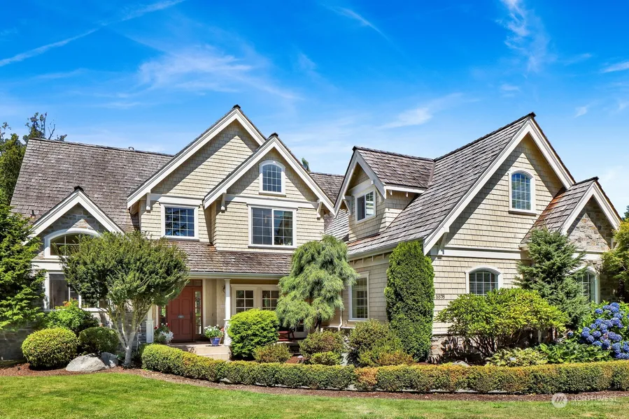 Welcome to the sunny side of Semiahmoo where this low maintenance gardeners' paradise awaits! Located on the iconic signature hole of the Arnold Palmer golf course at Resort Semiahmoo, this home exudes quality at every turn! A blend of modern luxury melded with old-world craftsmanship.The main floor primary suite is opulent with large floor to ceiling bay windows with lake and golf views, a spacious sitting area, a gas fireplace, triple walk-in closets and a five-piece bath blanketed in travertine. The kitchen is refined and timeless with two walk-in storage pantries, and a wonderful eating nook where your front row view of the lush landscaping, gorgeous sunsets over the lake and the wildlife that gravitate to this waterfront location.