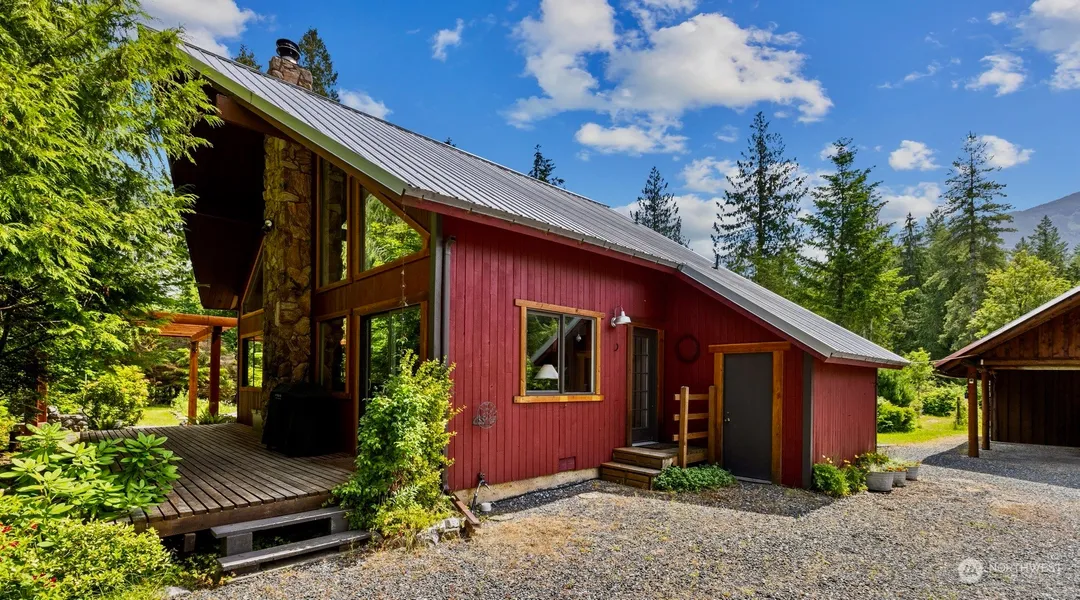 Rustic Mountain Home on 1.5 acres nestled in the Village of Maple Falls. Cozy up to the wood stove under vaulted T&G ceilings surrounded by fir lapped walls & Fir Floors. Kitchen has Farm sink, w/more storage in the adjoining laundry/mud area. Add'l Room on the second level for an office/bedroom. Enjoy Mountain views while tending the gardens and sitting by the custom rock fire pit. Outbuildings include: Wood Shed w/storage above for guests and treasures, workshop w/gardening tool & toy storage, Greenhouse, Chicken coop, Barn, and 2 lean-to structures. Property served with Hi Speed Internet and close to the Mt Baker Recreation Area & lots of outdoor activities! Great location for a VRBO! Sale includes 2 extra lots offering lots of potential