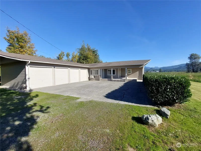 Welcome home to this meticulously remodeled gem nestled in the heart of Nooksack Valley. This stunning residence provides the perfect blend of modern luxury and rural charm. Situated on just shy of 4 acres, the property offers views or the local mountains and offers a serene escape from the hustle and bustle of everyday life. Step inside to discover a thoughtfully designed interior that seamlessly blends contemporary style with warm, inviting spaces. The open-concept layout creates an airy and spacious atmosphere, perfect for relaxation. The new kitchen features top-of-the-line appliances, sleek countertops, and a lot storage space. A spacious 4-car garage adds ample room for vehicles, storage, or a workshop.