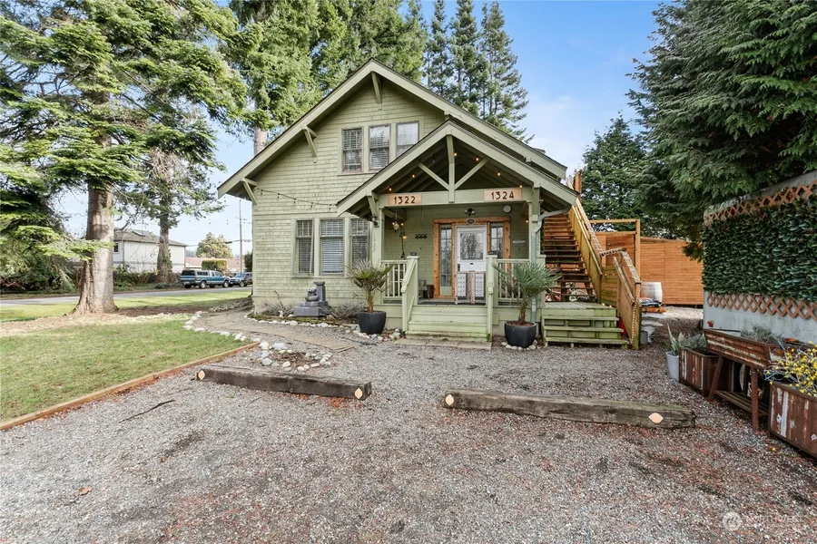 1923 Craftsman Heritage home in the historic Salishan Neighborhood! It has been both a duplex & single-family home. Current owners live in the large 1210 sq ft main level with 2 bdrms, updated bath, spacious kitchen, utility room, & grand living room w/cozy gas stove that opens to the dining room. Warm & inviting entry/porch too! The 712 sq ft upstairs unit is lovely & used as an Airbnb w/ 2 bdrms, full bath & open living room kitchen/dining area. It has a small porch at the entry w/partial bay views. Keep as separate units or open up the interior stairway & make it 1 large home. Gorgeous fir floors throughout. Private outdoor area is amazing & tons of parking space! Salishan Park is across the street & can walk to schools & waterfront!