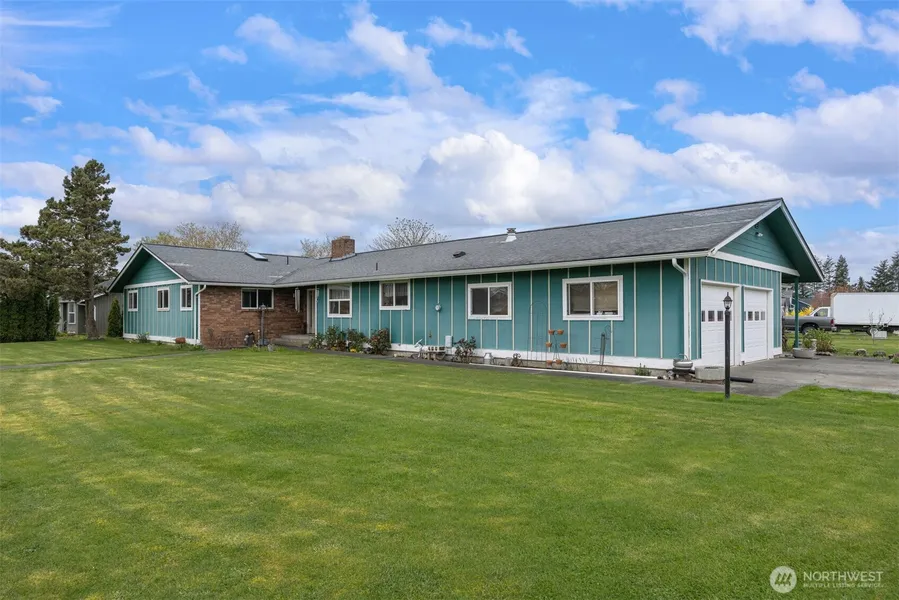Welcome to this charming single-level home with an attached ADU! The spacious living room features a wood-burning fireplace, wet bar, and access to the outdoor living area. The easy-flow layout includes a kitchen with ample storage, cozy breakfast nook, and formal dining room-ideal for casual mornings or special gatherings. The primary bedroom offers an ensuite with sauna, soaker tub, and direct patio access. The ADU, currently rented for $1300/month (utilities included), has its own address at 405 Shuksan Way and features updated vinyl plank flooring, fireplace, and private entrance. Set on a partially fenced corner lot, property also offers garden space, an RV pad, & an oversized garage: ideal for hobbies, storage, or extra vehicles