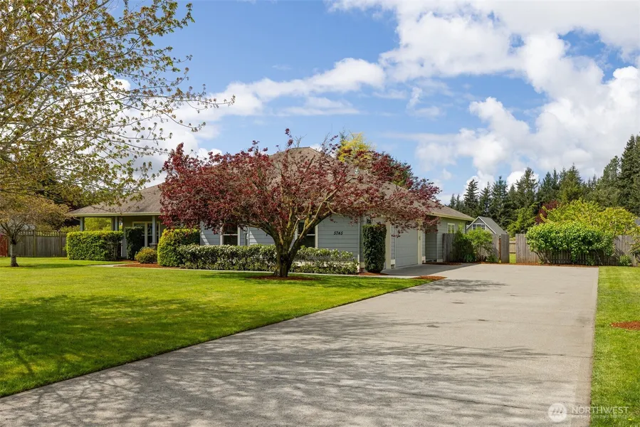 Nestled on nearly an acre in a premier neighborhood close to shops and amenities, this elegant Northwest-style estate offers a smart, private layout. The grand entry opens to vaulted ceilings and cherry wood floors, with the spacious primary suite on one side and guest rooms on the other. The open-concept living area features a gas fireplace and a dining space perfect for entertaining. The primary suite includes a large walk-in closet, double sinks, and a soaking tub. A covered back porch overlooks the fully fenced yard with shop potential. Extras include an executive-sized office, dog wash station, irrigation, and a brand-new 95% efficient furnace. Peaceful yet convenient, with a flat, usable lot and 3-car garage close to I-5.