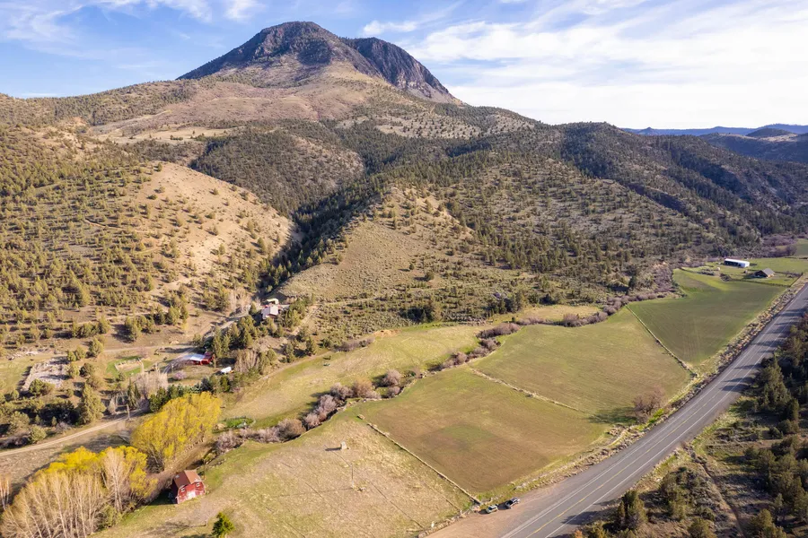 Rare 76 Acres along the banks of West Branch Creek at the base of Black Butte just West of Mitchell. Fully fenced property w/13 Ac of Water rights for several irrigated pastures watered by wheel lines plus lg fenced dryland rye field. Farmhouse perched on the knoll above offers amazing territorial views, 4 bed, 2 bath, 2200 sq ft country home built in 2007. Spacious rooms with bonus rm, could be extra bedroom or office and space off kitchen for extra storage. Lg Shop/tool room, woodshed, detached garage, carport, container & more. Fenced garden areas, greenhouse, raised beds, orchard & pumphouse w/cellar/cold storage area. Older barn had living qtrs above (needs work) additional well & power nearby. Truly an amazing setting situated at the foothills of the Ochoco Mountains, not far from the John Day River, Sutton Mtns adn Painted Hills National Park!