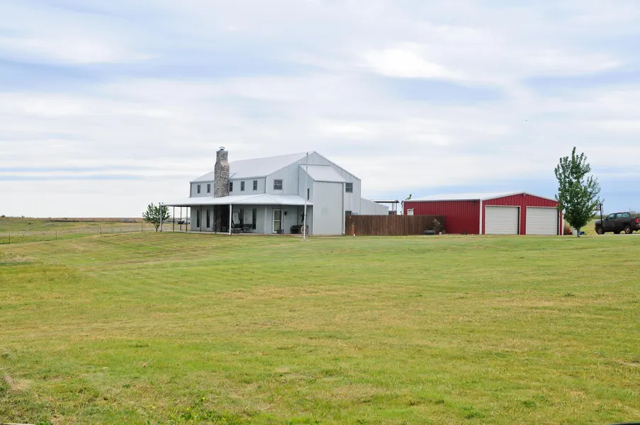 NEW PRICE!!! Magnificent country style living on a 20 acre plot of land. This home has beautiful stained concrete, wood and carpet throughout. There is a 30 ft. ceiling on the main floor, built in ranch oak cabinets and wrap around porch. Isolated master bedroom has a room accessible by separate stairs that could be used for an office, nursery or reading nook. Master bathroom includes a claw foot tub and over sized shower. The grounds of the property feature a loafing shed w/ tack room, storm shelter and pond. The incredible views and quietness of the country will captivate you. 2 car garage is 30x40 with plenty of space to fit more vehicles and toys! Inquire today!