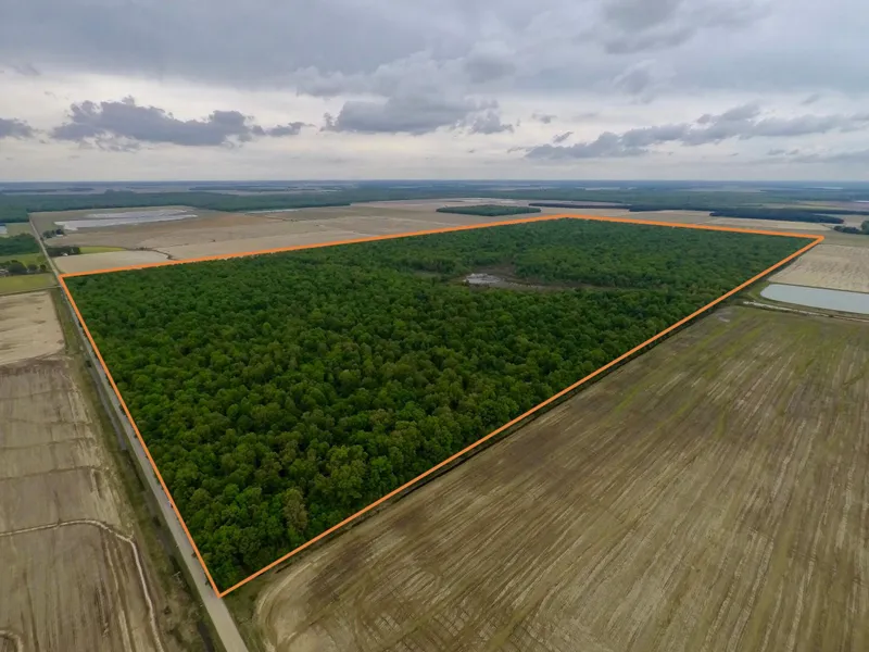 The Oak Flat 320 is the unicorn of the land industry...flat ground covered in hardwood timber with a substantial drain running roughly through the center and surrounded by crop ground. Just a mile south is Bayou Des Arc and some very ducky ground that's all private...no public access. There are some very good possibilities for The Oak Flat including, but not limited to, further development for waterfowl and whitetail. The east and west boundaries are 1 mile apart and bordered by county roads making access easy and convenient. The "hole" is located fairly close to the center giving it plenty of good buffer from the road.