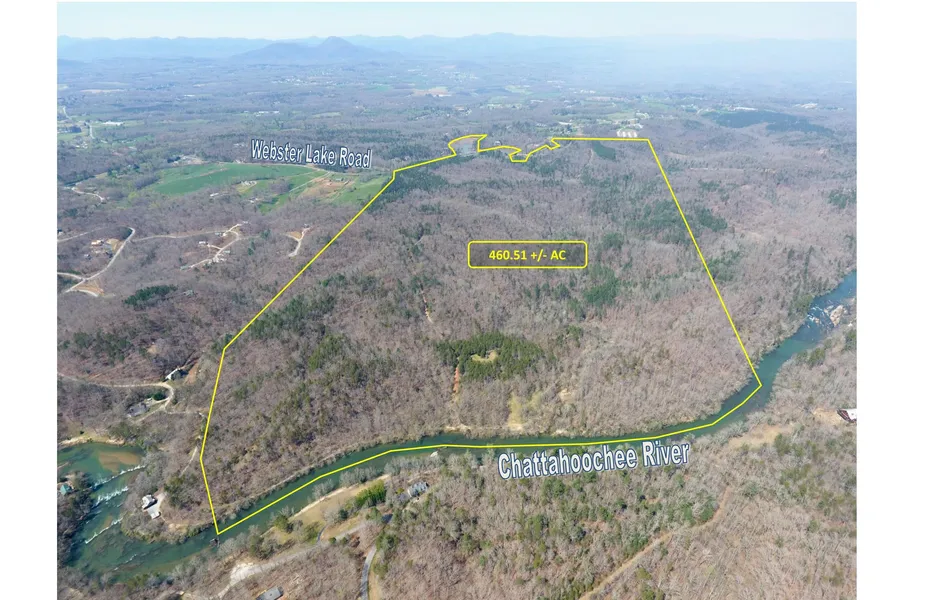 The Norton Commercial Group is proud to present this beautiful riverfront acreage tract in southeast White County, GA. This is the perfect recreational or gentlemans estate tract with all the natural amenities to match. The offering consists of roughly 460 acres, mostly wooded and rolling land along with a 21 +/- acre lake at entrance of the property. Webster Lake was created by damming White Creek providing beautiful water features and a great recreational amenity. There is a total of 3,350+/- of frontage on the scenic Chattahoochee River with open event space and river access. Totaling just over 460 acres, this tract is one of the largest privately held contiguous tracts left in all of White County. Excellent road infrastructure throughout the entire property allowing 4-wheel drive travel to most of the Chattahoochee River frontage and multiple access points on either side of White Creek. Several riverside, creek-side and waterfall viewing home sites throughout the property. Currently Zoned A-1. Electricity, Cable, Telephone, Well Water available. There is a 7,000 SF home with 5 acres on Webster lake that is not included in this offering but could potentially be packaged into a sale. You won't find an acre property with more features in one parcel! So much value with tremendous long term potential. Nestled in the foothills of the Blue Ridge mountains, on the Chattahoochee River, this one-of-a-kind property is located at the intersection of Webster Lake Rd and Stephens Dr. 1,150' of frontage on Webster Lake Rd and full access on Stephens Drive. Property has easy access to Cleveland, GA and is a quick hour drive from almost anywhere in Metro Atlanta.
