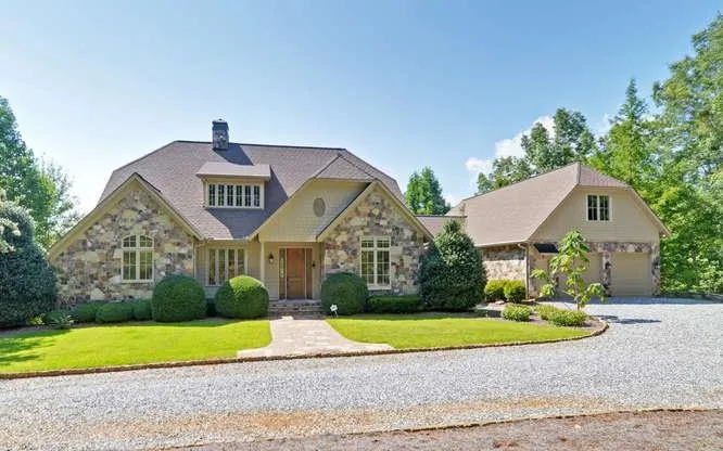 When only the best will do!! Irresistible Mountain Living in this traditional hardi-plank and stone home. Two master suites on the main, hardwood flooring thru-out, formal dining, 9 ceilings on main and terrace level. Reward yourself with the welcoming large kitchen w/island, built-in refrigerator and dishwasher. Walk outside and enjoy the extended covered decks overlooking year round mtn views on 3 acres. Terrace level offers 4BR's, 4BA, den and kitchenette. Easy accommodations for extended friends and family. Located in prestigious Skylake, presenting walking trails, waterfalls, swimming, tennis, equestrian, and private fishing and boating lakes for this planned mountain community.
