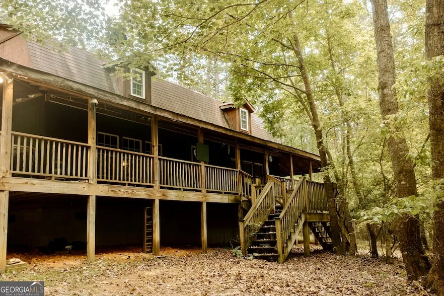 Escape to your own private North Georgia retreat! This charming 3-bedroom, 2-bath waterfront home sits on 1.77 secluded acres surrounded by nature - offering the perfect mix of peace, privacy, and convenience to Cleveland, Helen, and Habersham. Inside, the open-concept main level features a welcoming living area with a cozy gas log fireplace, a bright kitchen with a walk-in pantry, and a spacious primary suite. The primary bath connects directly to the laundry room with outdoor access, perfect for easy clean-up after a day spent exploring or relaxing by the pond. Upstairs, you'll find two large bedrooms and a full bath, ideal for family, guests, or a home office. A wide wraparound porch invites you to unwind and take in the peaceful views from every angle. Two outbuildings offer excellent storage or workshop space, giving you room for hobbies, tools, or outdoor gear. Whether you're looki...