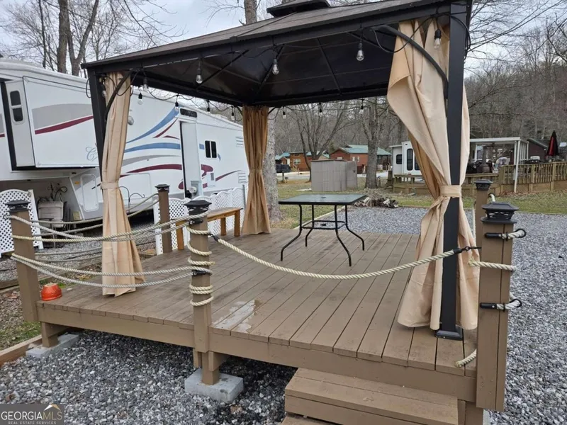 Spacious RV lot available in a desirable RV park! This level lot features fresh gravel, a raised deck with a charming gazebo perfect for outdoor relaxation and a brand new shed for extra storage. There's room for your RV, golf cart and parking for your vehicles. Equipped with septic hook-up and power already on site, this lot is ready for your RV or tiny home. Don't miss the opportunity enjoy comfortable and convenient living in this well-maintained space while enjoying the North GA mountains and the amenities.