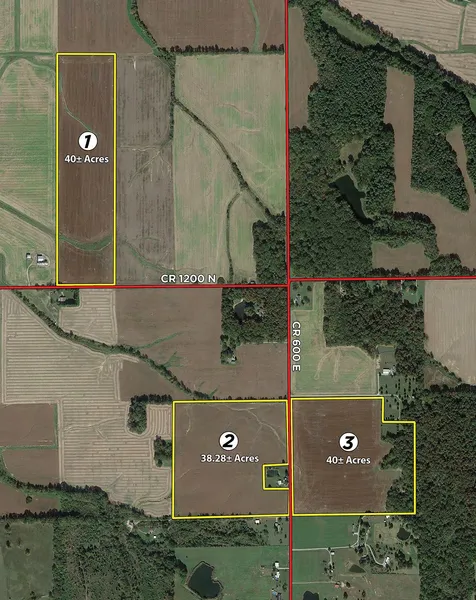 For the farmland investor, the nearly 40-acre tract with access from CR 600 E features productive soil types, great yields, and multiple, well-maintained watersheds. Tract 2 is a production-ready farm. Parcel ID: 12-36-200-007. Please refer to the website for FSA and soil information.