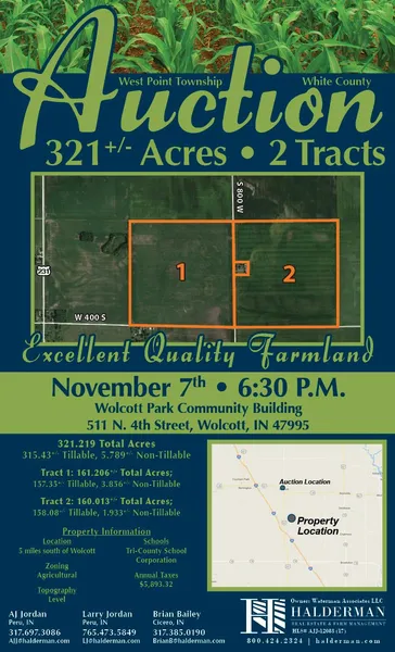 Legal Description: in the SE1/4 of Section 18, a part of the SW1/4 of Section 17, T26N, R5W, West Point Twp, White County, State of Indiana; Parcel #91-65-18-000-000.300-023 & 91-65-17-000-000.400-023