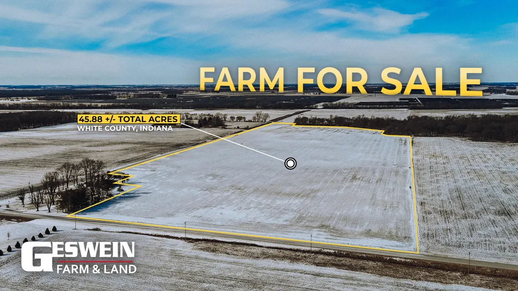 Located in White County, Indiana, this exceptional farm should be of interest to anyone looking to expand their farm and/or invest in land. There are 44.57 acres of productive farmland according to the FSA. There is excellent road frontage with State Road 39 on the East side and 1000 North on the South side. The farm has been fertilized for 200 bushel corn already, and there is an open lease for the 2025 crop year. The average yields for the past six (6) years are 188 bushels of corn and 58 bushels of soybeans. Call Craig Stevenson (574.870.4383) to schedule your private showing or for more information today!