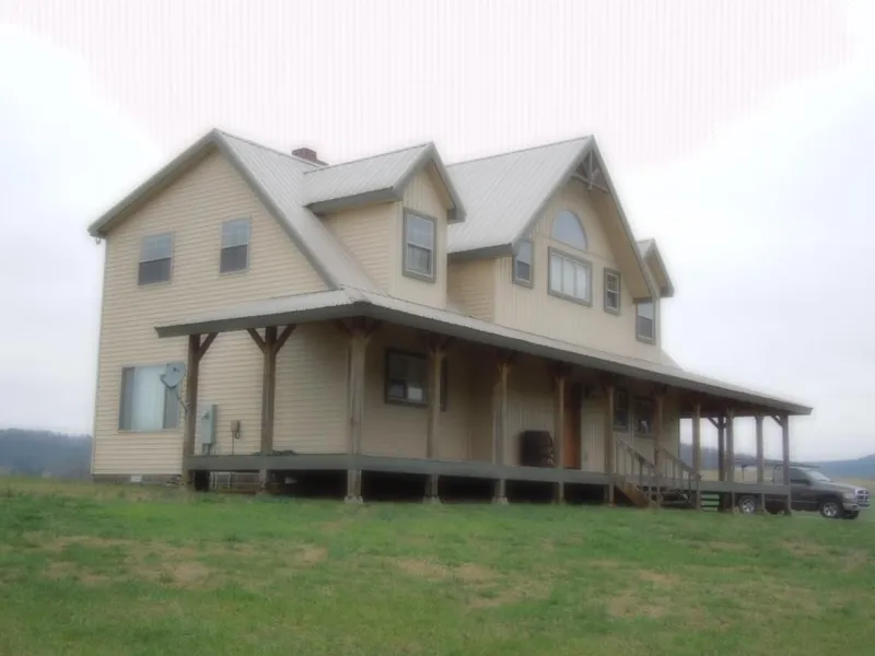 An absolute unique down to earth cowboy / cowgirl ranch with the same character within the home style. 5.03 ac with a lovely 2007 2 story home with 3BD/2.5 BA, approx 3190 sq ft, open concept living kitchen dining room with cedar plank & wood beams vaulted ceilings, TN stone FP, breakfast nook, 3 to 5 inch wide hardwood floors thru out. Custom kitchen with stainless steel appliances, tile counter tops, custom cabinetry. AC/Heat units, French doors, cowboy cowgirl master bath, large L shape covered decking & open back decking. Lovely mountain and valley views with a 360 degree views with the home sitting way off of the road for privacy. The entire 5 ac is a level to a gentle roll that would be ideal for horses or a few head of cows, garden spot or build a few more buildings. Modest restrictions no manf homes. Approx 7 miles from town and Wal-Mart but out in a lovely country loc...