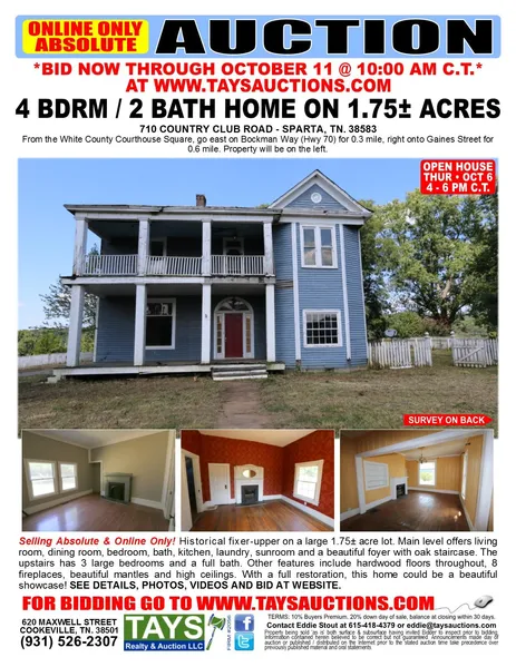 Terms: 10% Buyer's Premium. 20% down day of sale, balance due at closing