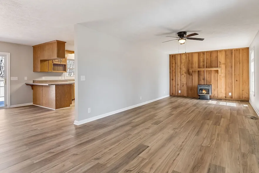 This 4-bedroom, 2.5-bath home sits on 5 mostly private acres, offering the perfect mix of space, comfort, and seclusion. Featuring a durable metal roof, fresh paint, and new flooring throughout, this home is move-in ready. The massive back deck provides a completely private outdoor retreat, while the cozy gas fireplace in the living area adds warmth and charm. The full basement is a standout feature, offering two garage doors, tons of parking and storage space, and a wood-burning stove. A storage building and carport also convey, giving you even more room for tools and equipment. If you re looking for privacy, space, and convenience, this property checks all the boxes. Schedule your showing today!