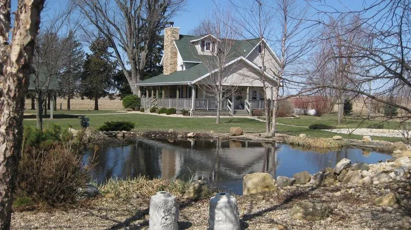 Pond with Fountain in the professionally landscaped yard.