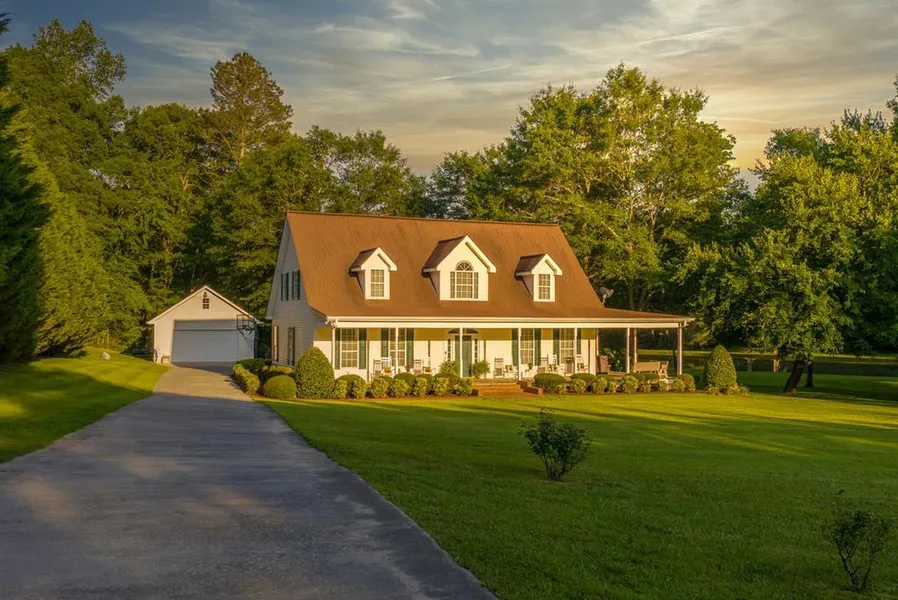 Come sit a spell & rock your worries away from the wrap-around porches overlooking lushly landscaped 5+ acres with a babbling creek and pond. This tranquil location features a spacious home with great room for gathering, formal dining room for entertaining, kitchen with all the perks: breakfast bar & nook that is big enough for farm style table, and large office to accommodate working for from home. This is truly a multi-generational home with private spaces for each member of the family, a master on the main with large en suite, and a full in-law apartment with a separate entrance. Follow the front stairs to the loft area overlooking the great room, the loft area is large enough for a great reading spot or homeschool area. To the right and left of the loft are 2 bedrooms each with their own full bath, plus a big bonus room or possible 5th bedroom with access to backstairs which leads to the large laundry room. Wait there is more, there is another space flex space upstairs that would make a great video game room, media room, or easy access storage. Back outdoors you will enjoy walking around the pond to the outdoor entertaining area, there is also a place for your fur babies and a two-car detached garage. Call today to tour this wonderful home.