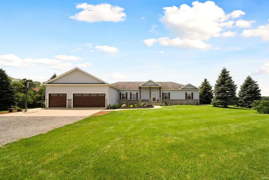 Welcome to your own private retreat in the heart of Whitley County, perfectly positioned near the Noble and Kosciusko county lines. This impressive 5-bedroom, 3-bath ranch estate offers over 4,000 square feet of refined living space with a finished walkout basement and every amenity designed for comfort and style. Inside, soaring vaulted ceilings highlight the spacious open layout with ALL NEW flooring, while the custom chef’s kitchen with a large island is perfect for gatherings and entertaining. The primary suite feels like a sanctuary with its spa-like bath featuring a jetted tub, walk-in tile shower, and generous walk-in closet, while every additional bedroom also includes its own walk-in closet for maximum convenience. Geothermal heating and cooling, updated finishes, and main-level laundry add to the home’s appeal, while the basement offers a large recreation room and root/wine cellar. Outdoors, 8.6 acres of pristine land provide space for horses and fencing, newly landscaped grounds, a rear deck overlooking fresh apple and peach trees, and wooded acreage teeming with deer, turkey, and morel mushrooms. Completing this exceptional property are a heated 3-car garage with new epoxy flooring and a 32x48 pole barn, making this estate the perfect balance of luxury, privacy, and connection with nature.