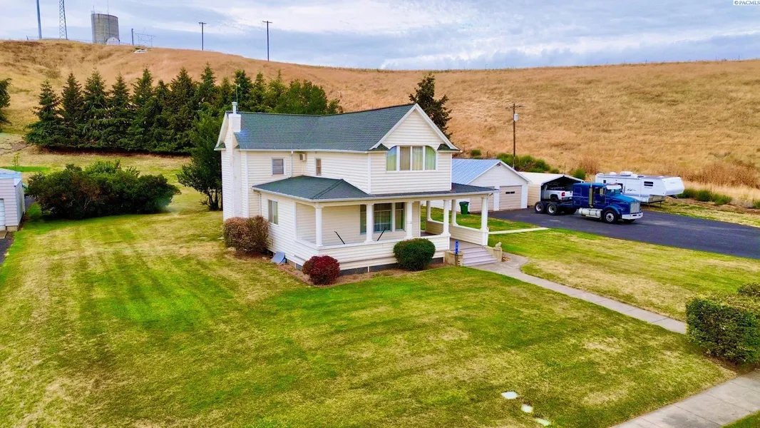 MLS# 278508 Discover a rare gem in the heart of Whitman County! Nestled on just under 4 acres, this exquisite Victorian farmhouse is a true treasure. Boasting 4 spacious bedrooms and ample storage, this charming home offers endless possibilities for its new owners. Positioned proudly on a corner lot with stunning city views, you'll enjoy the perfect blend of tranquility and convenience.Privacy abounds with only one neighbor nearby, allowing you to relish the serenity of your surroundings. The property features an expansive Quonset hut and a roomy 2-car garage, providing plenty of space for all your storage needs. Additionally, a bonus fenced-in lot across the street, complete with a picturesque creek, offers ample room for campers, trailers, and outdoor toys.This well-maintained farmhouse embodies timeless elegance and modern comforts, making it an ideal retreat for those seeking a peaceful yet connected lifestyle. Don't miss your chance to own this slice of heaven. Call today and make this dream home yours!