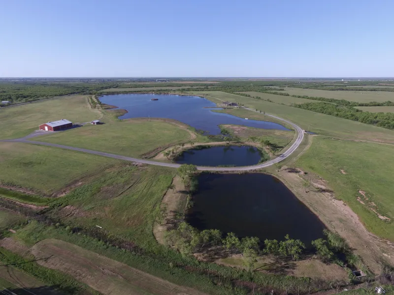 This amazing lake property has more to offer than most other properties of its size in Texas! From spectacular views of the lake while sitting on the covered porch of the main ranch house to having the capability to produce 6-7 cutting per season of top quality coastal grass hay. The location of this property is very unique and from sitting on the quiet porch of the main ranch home, it is hard to believe that you are only five minutes from United Market Street and other "City Living" amenities of Wichita Falls! There are so many opportunities for recreational activities from the water to the beautiful green grass meadows that are ideal for outdoor sporting activities. The huge insulated red barn is a turn-key setup for hosting a variety of large events such as wedding parties, nonprofit events, or award/banquet ceremonies. These events could be contained to the front part of the property with the lake, barn area, gate house, and bath house without even disturbing the peace and quiet of the main ranch house. As you enter the northeast corner of the property, you follow the winding paved road passed the red barn and equipment shed, then between the main lake and ponds. A few yards later you enter the area around the ranch house, where you will find plenty of parking area, both covered and uncovered. The back porch and outdoor kitchen area are handy to the beautiful saltwater pool with the lakeshore only a few steps from the backside of the pool.