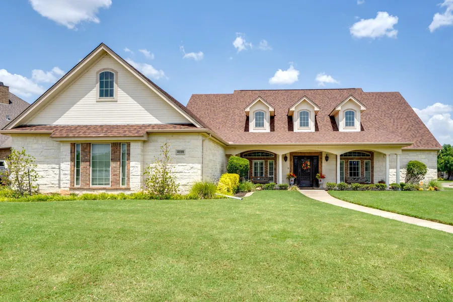 Gorgeous & well-maintained 1-story custom home, located south of Wichita Falls, in the much desired Bridge Creek Estates! This home sits on a corner lot offering many high end & unique features; granite counter tops, ss appliances, island, gas cooktop, heated floors in master bath, plantation shutters, tray ceilings, Versa Lift to the attic in the garage & utility room actually doubles as a safe room as well. You'll enjoy outdoor entertaining on the large covered back patio with fireplace & mounted Tv. This home has lots to offer and only minutes from city conveniences. Come see it before it's gone!
