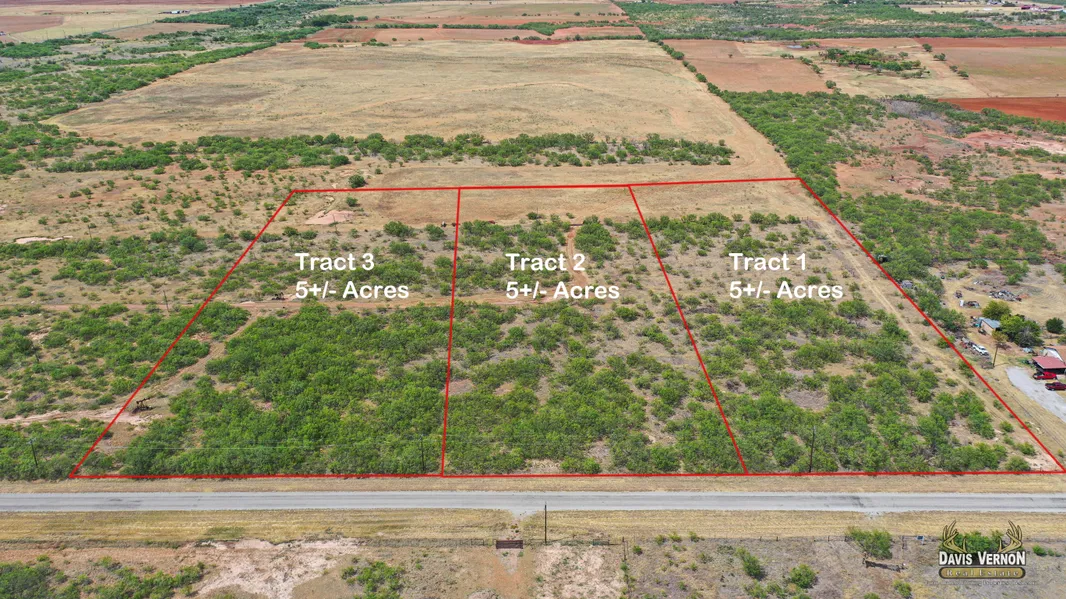 Located just off of US Hwy 287 in Electra, Texas, then 1.2 miles North on Highway 25 to Old Lake Rd, then one half mile west. Recently surveyed tracts are partially wooded with mesquite and some open area. Property will have electric service available on paved road and city water meter will be in place as well.