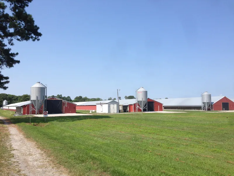 Four chicken houses: 3 & 4 are 42 x 500 (clear span) and 1 & 2 are 32 x 376 (pole type). Approx. 66,064 Square Feet. All chicken houses have controllers and 6 '' recirculating pads. Has a 100 Kw Backup Generator. Living quarters are a 2-story main home and a 13 x 66 single-wide mobile home. Grows for Perdue now. Installing tube heat soon.