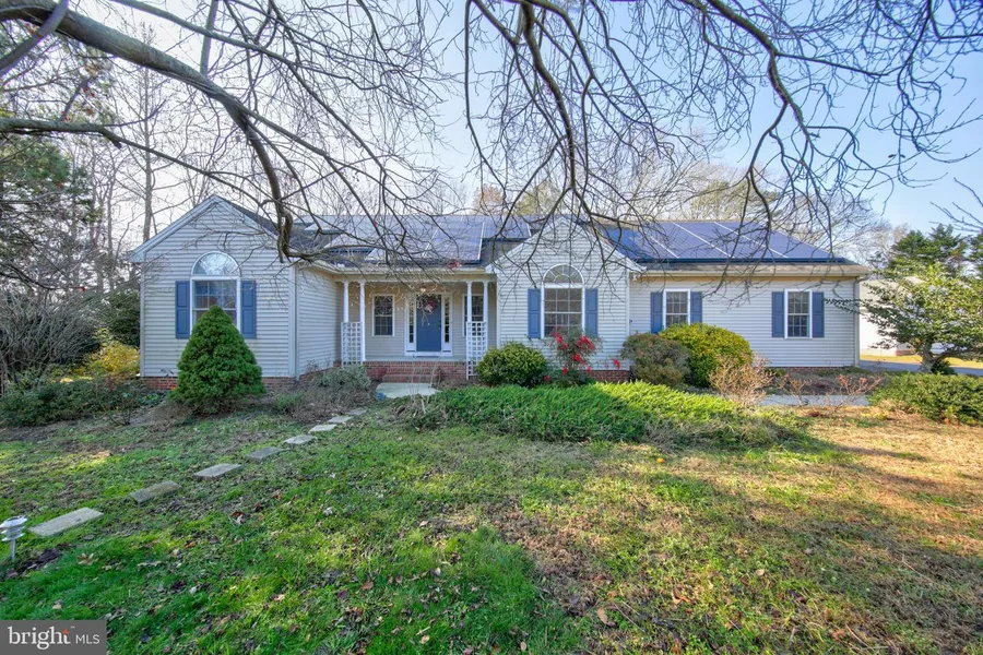 This open floor plan rancher has an updated kitchen with SS appliances and solid surface counter tops,and brand new hardwood floors throughout. A split floor bedroom plan has the large primary bedroom and bathroom on one side of the house and the other 2 bedrooms, bathroom on the opposite side. Enjoy the step down sunroom with glass sliders the whole length of the room. Walk out to the above ground pool or to the Pond directly behind property that leads out to the Creek. Launch your canoe from your own dock. Leased Solar panels keep the electric bills low.