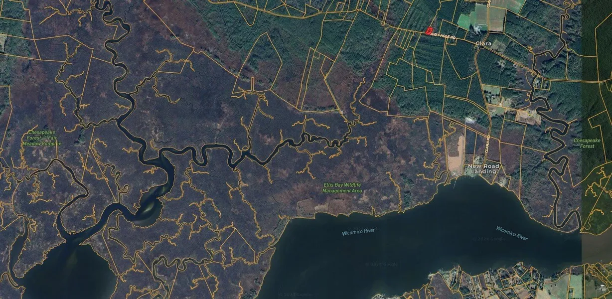 1.5+- wooded acres in proximity to the Ellis Bay Wildlife Management Area, Chesapeake Forest, and public boat ramps. A lot to park your camper for a place to stay while enjoying your recreational activities, including whitetail and turkey hunting in the area. No conservation easements.