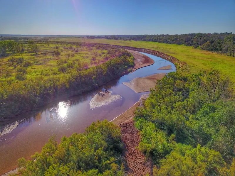 Terrain: Dos Rios Ranch is a premium North Texas recreational, hunting, and cattle ranch! From the beautiful views from the ranch house of the irrigated fields below to the many shaded hollow areas along the steep red bluffs, there are so many great attributes to this river ranch. For a ranch of this size, the Dos Rios Ranch has an enormous amount of river frontage including 4+ miles of Red River frontage and 1.25 miles of Pease River Frontage! Due to the changing vegetation throughout the Red River bottomland, the thick hardwood lined bluffs, heavy mesquite and underbrush, and the food plot areas, wildlife of all sorts are found throughout the property. It is very common to see large numbers of whitetail deer and turkey on the winter wheat fields that follow the contour of the river. These deer travel from the dense hardwood thickets that line the bottomland and the tall grassy meadows with scattered plum thickets and other underbrush which extend to the riverbank. The large hardwood thickets and groves are also home to flocks of Rio Grande Turkey. It is not uncommon to see groups of turkey coming to and from their roosting home. The hardwood areas on the Pease and the Red River are comprised of hackberry, cottonwood, chinaberry groves, elm, mesquite, and a few scattered cedar trees. The large tree groves and thick hollow areas offer perfect bow hunting opportunities. Wildlife trails are very common throughout these dense areas and it would be easy to view game at close range. Cattle do extremely well on the ranch with the sub-irrigated bottomland and irrigable cultivated wheat pasture fields. The ranch is cross-fenced into several pastures to maximize grazing potential and concentrate grazing in certain areas of the ranch depending on the time of year. In normal conditions and with proper management, the Dos Rios Ranch will accommodate approximately 150-200 pair. There are 10 large watering troughs scattered across the ranch to enable easy access to fresh water for livestock and wildlife. Waterfowl hunting is absolutely amazing on Dos Rios Ranch due to the large amounts of surface water and the prime flyway location at the confluence of the Pease and Red Rivers. It is not uncommon during the winter to see thousands of ducks in this area. There is also the ability to flood future hunting areas with the existing irrigation wells. All along the hardwood lined red bluffs are several large year-round spring fed pools and seeps that continually keep fresh water easily accessible for wildlife and livestock. These natural features could easily be deepened or customized into a particular duck slough or pond. Hiking, exploring, four wheeling, artifact hunting, bow fishing, and horseback riding are a few other recreational activities that are ready to be enjoyed at the Dos Rios Ranch!