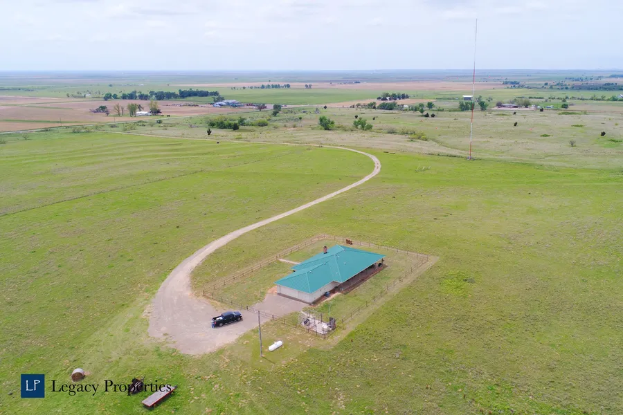Built in 2006, the ranch house was constructed to be durable and efficient. Per the owner, it is well insulated throughout, so utility bills are low. The exterior is all metal roof, eaves and siding. A wrap around concrete porch encircles three sides of the house, with cedar columns and recessed lighting. The interior has stained concrete floors, with grooves cut to simulate tiles. The whole house is electric; rural water and septic system with lateral lines are in place too. It is heated and cooled through a CH/A system.
