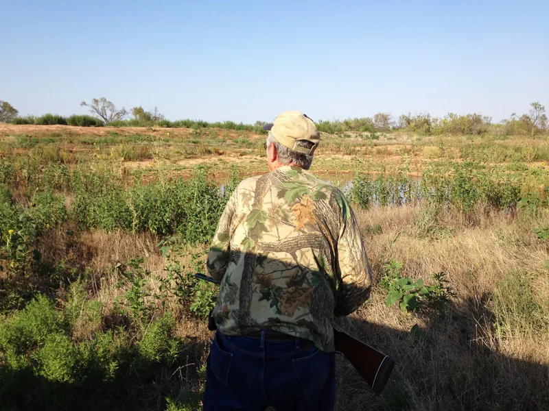 The dove hunting on this place is fantastic! I have hunted it with family and friends for over ten years now, and the hunts are always a blast. Elizabeth Creek, a seasonal wash, runs across the property for half a mile and acts as a flyway for migratory birds in the Fall. Sunflowers in the pasture and scattered wheat seed in the fields provide multiple feeding areas. A large springfed tank in the pasture provides a dependable water source for the birds, as well as for livestock. On a good year, you can host twenty or more bird hunters. In addition to dove hunting, there are also hogs and some whitetail deer.